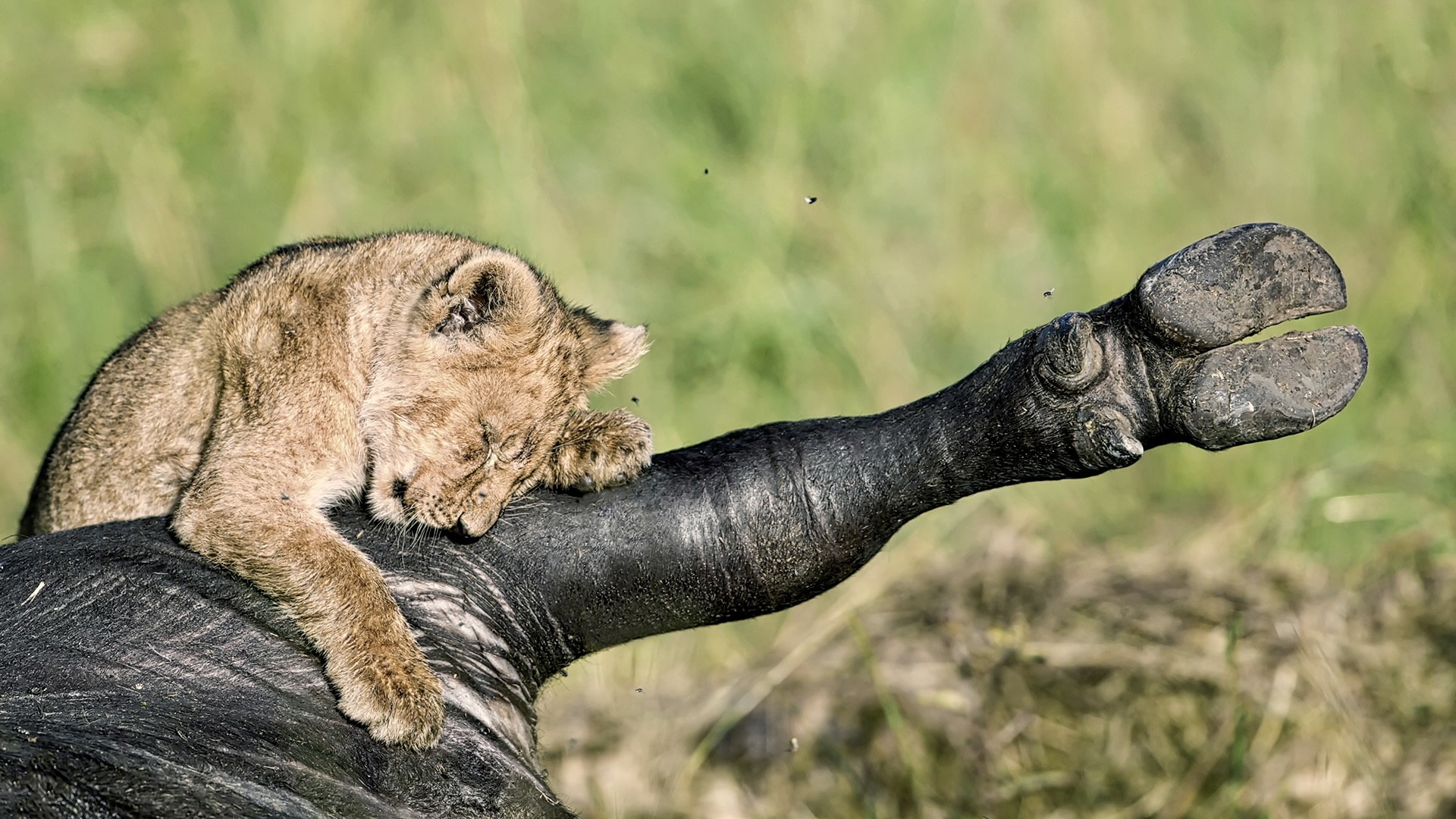 | 2019 THE GREATEST MAASAI MARA PHOTOGRAPHER KENIA | highly honored | - lion cub on buffalo leg - |